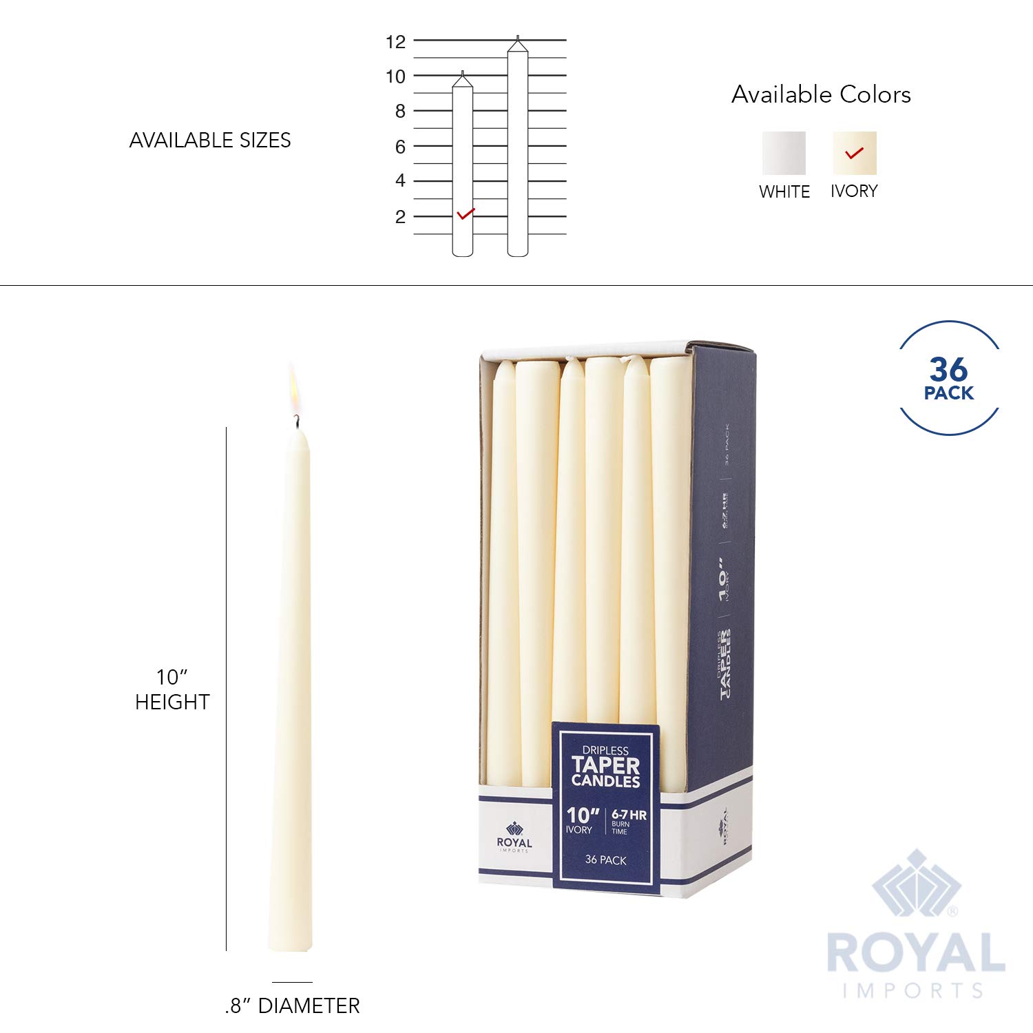 Amazon Com Royal Imports Unscented Taper Candles Elegant Premium Quality Dripless Smokeless Hand Dipped Dinner Candles For Wedding Holiday Home Decor 7 Hour Burn Time Set Of 36 10 Inch Ivory